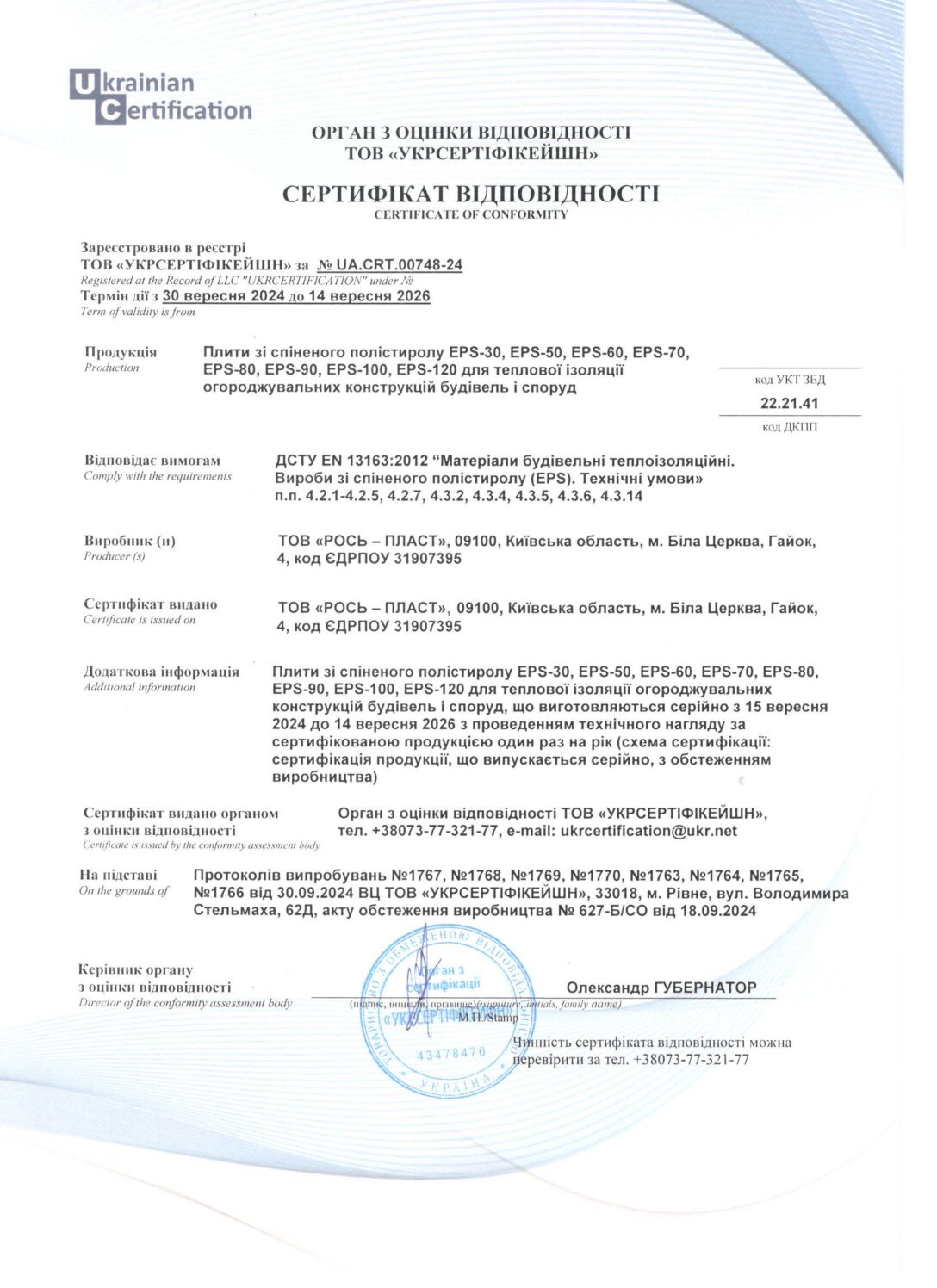 (UKR) Сертифікат відповідності
